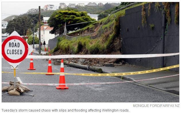在惠灵顿,周一晚间的强风风速高达130kmh,让Rimutaka Hill Rd遭受重创,甚至把城市南郊的脚手架吹飞。强震后的恶劣天气和余震引发的滑坡现在仍在持续,导致Plimmerton-Kapiti之间的火车线路中断。