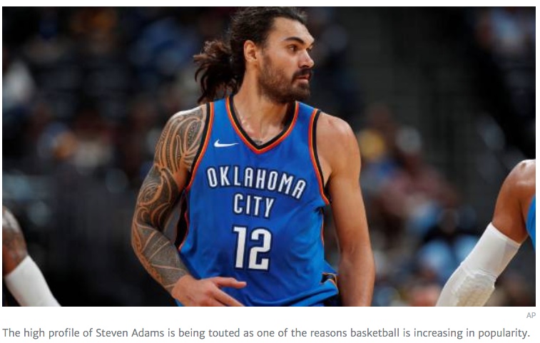 他说,促进篮球运动发展的因素很多,其中包括新西兰职业篮球队Breakers在澳大利亚全国篮球联赛里的成功,以及NBA球星Steven Adams的影响。