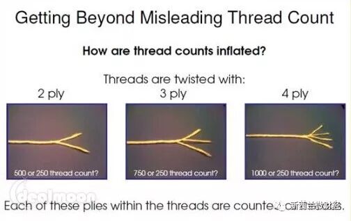 因此某些厂家投机取巧,将用2 ply纱线纺成的200 TC布匹称为"400 TC",那些标注1000 TC而价格却很便宜的大家就知道怎么回事了吧。所以single ply的数值是肯定是真的。