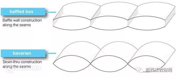 在购买羽绒被的时候,还可以注意一下被子的缝制结构。羽绒被通常都需要缝好固定,以免羽绒填充走位影响保暖效果。比较流行的结构方式有Sewn-Through和Baffle Box,如下图👇👇。