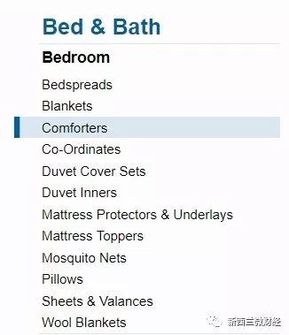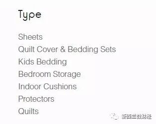 而这是新西兰Briscos的床上用品分类,两种分类是有些差别的: