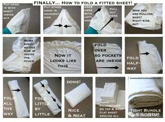 在洗好收纳的时候,床笠Fitted sheet因为是带一圈松紧带的,所以最难收纳,如果要叠成方块,需要费一点功夫。
