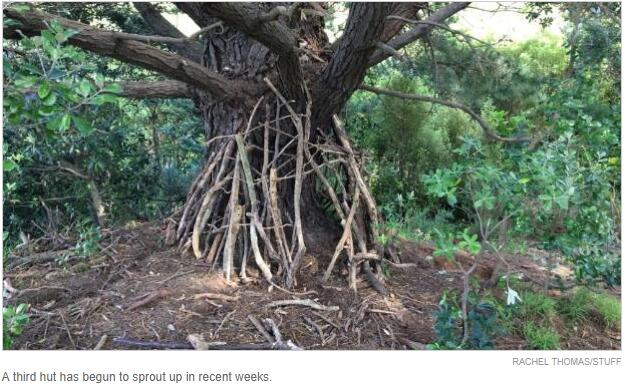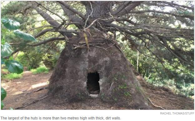 一位自称叫Rory的人在惠灵顿的维多利亚山上建了两栋一室全景海景房,这两套由树枝和泥土做成的小房子建在一棵巨大的松树下,旁边是人来人往的徒步道。房子虽小,可是却坐拥惠灵顿市区和海港的百万海景。