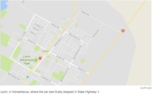 被盗车辆最终在晚上8点50分左右靠近Levin北部的地方被警车围住,并以低速撞上其中一辆警车。