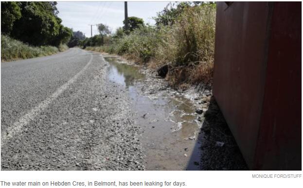 在缺水严重的时刻,Lower Hutt一名居民对于市里一处漏水点浪费水资源的行为感到愤怒。这名居民在周五开始,已经给Hutt City Council打过6次电话报告问题,然而问题仍未被解决。水务局表示对情况知情,他们已经联系了管理这个水阀的两户商家,督促他们尽快找水管工解决问题。