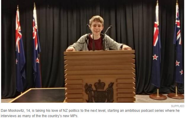 14岁的Dan Moskovitz是惠灵顿高中的一名学生,在同学们都享受学校假期的时候,对政治充满兴趣的他决定做一件大胆的尝试——采访新西兰新上任的国会议员们,从交流中了解他们的任务和职责,并且把他们做成播客系列,名为 “Meet the Newbies” 。