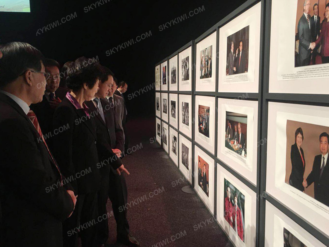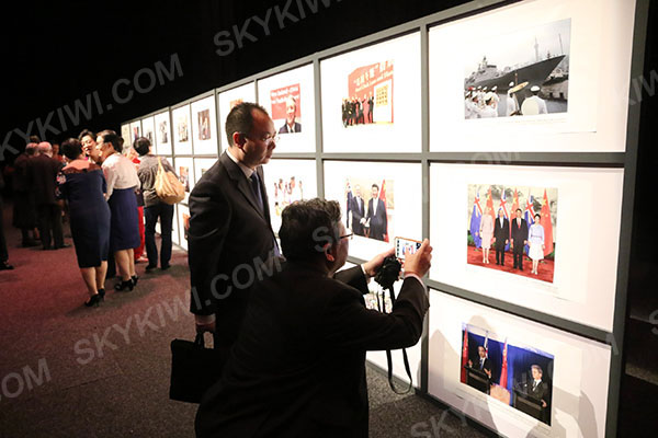 招待会上还展出了纪念中华人民共和国和新西兰建交45周年图片展,吸引众多嘉宾驻足观赏。