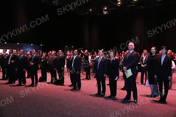 【新西兰天维网12月12日摄影报道】12月12日晚,中国驻新西兰大使馆在TSB Bank Arena隆重举行庆祝中新建交45周年招待会。第十二届全国人民代表大会常务委员会副委员长严隽琪率中国国际交流协会代表团访新,出席了此次招待会并致辞。中国驻新西兰大使馆屈光洲临时代办、新西兰外交事务副部长Fletcher Tabuteau以及来自新西兰当地政界、侨界等300多人出席了招待会。