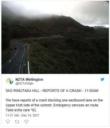 【天维网援引Stuff消息 Nicole编译】12月14日(周四),2号公路位于惠灵顿北部Rimutaka Hill Rd路段北行方向因车祸关闭。