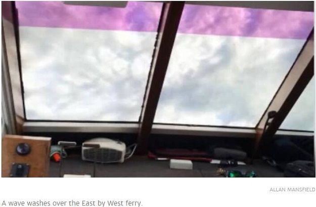 【天维网援引Stuff消息 Nicole编译】极端气旋过境,2月1日(周四)早晨,惠灵顿刮起了久违的超级大风,一艘连接惠灵顿市区和东海岸Eastbourne的轮渡船就经历了“惊涛骇浪”的一程航行。