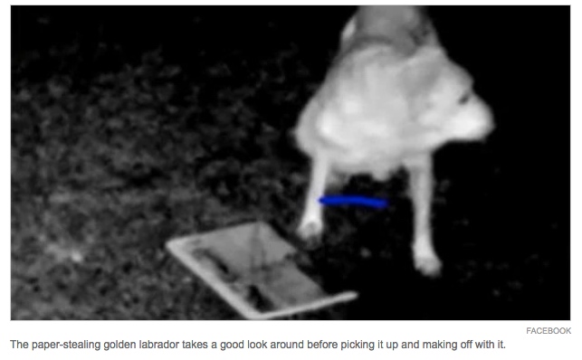 【天维网援引Stuff消息,Cecilia编译】他一直怀疑邻居里有个偷报贼,可没想到这个阅读爱好者竟然是一条上年纪的拉布拉多。