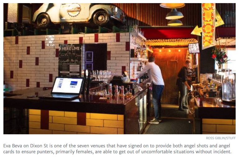英文原文:Wellington bars to offer 'angel shots' for women who feel unsafe on a night out