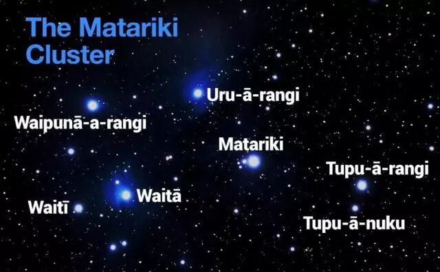 由7颗星星组成的昴星团在毛利语中称为Matariki,星团一般会在每年最短的几天中出现在东方的天空之上。