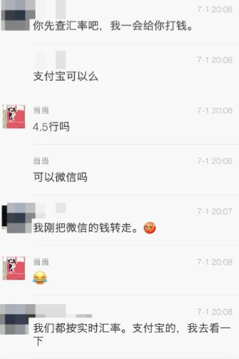 当确定好按照4.5的汇率结算后,双方决定就按当当所说的$4800进行交易,小张应转给当当¥21570。