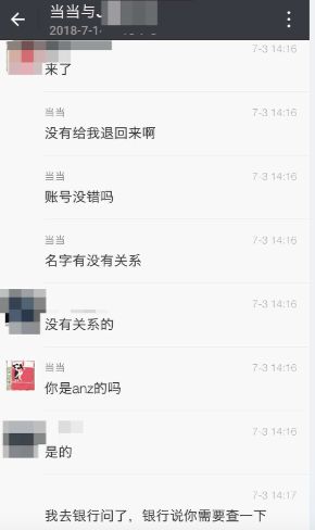 收到转账的“当当”要履行承诺给小张转钱了,10分钟后,“当当”把钱“汇”到了小张的ANZ银行账户,并且给小张发送了一张银行转账截图。