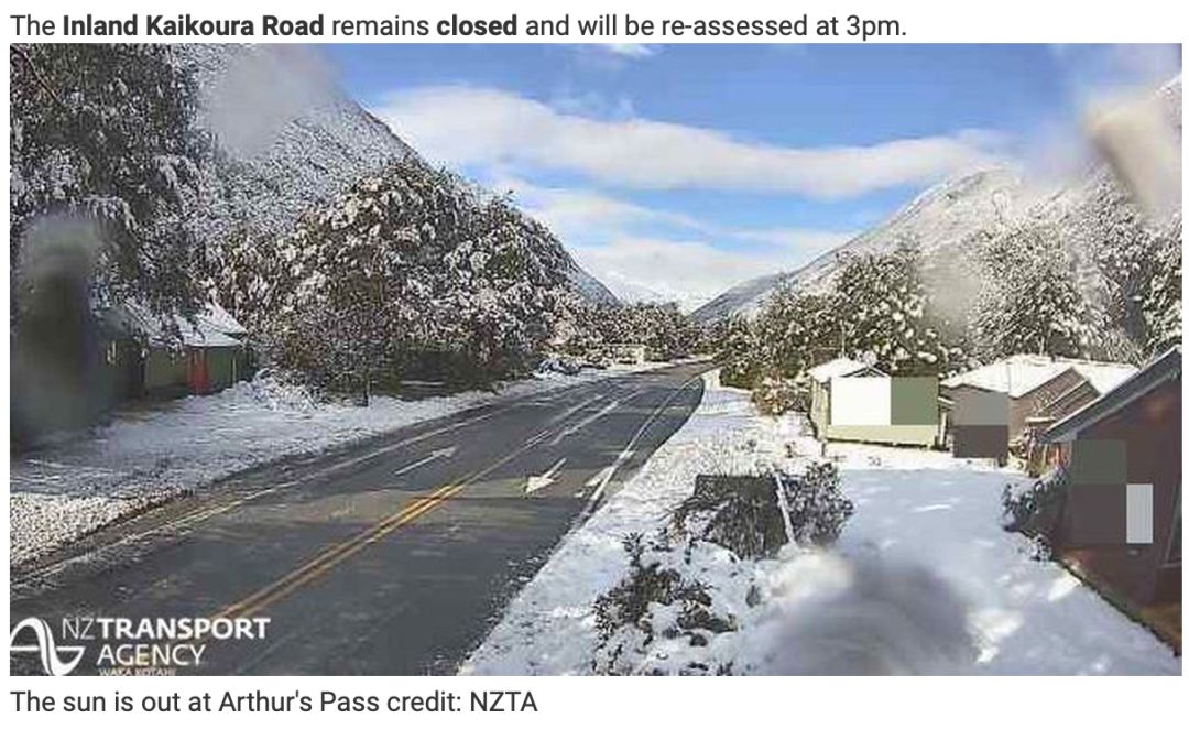 几家坎特伯雷的滑雪场也因为降雪而关闭。