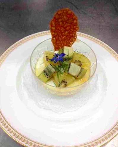 'Neudorf' Sheep Milk Yoghurt Panna Cotta with Manuka honey, kaffir lime and kiwifruit