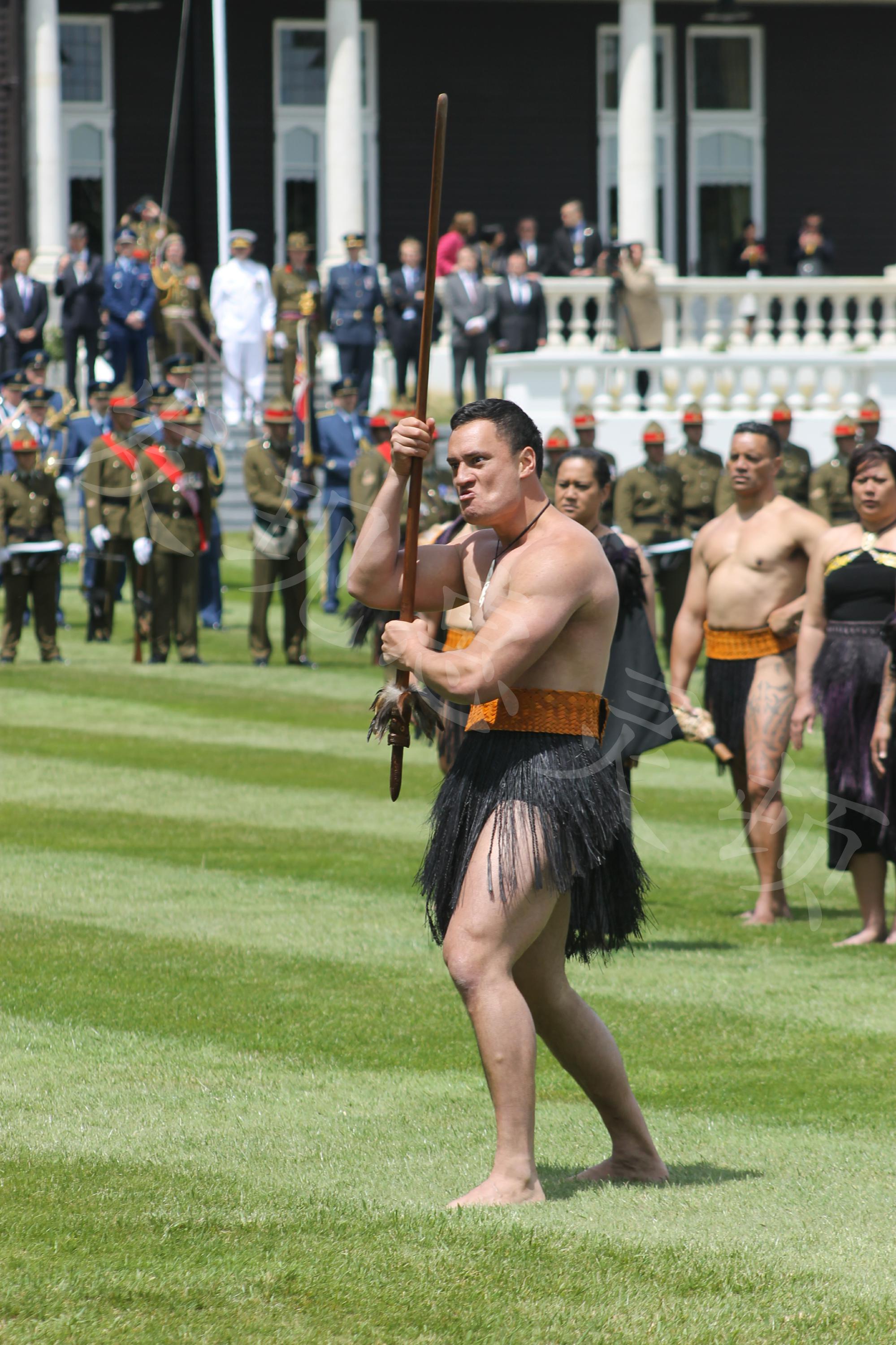 碰鼻礼结束后,便是传统的毛利欢迎礼,这一礼节以挑战(wero)为序幕开始,主人(tangata whenua)一方的勇士向客人(manuhiri)提出挑战。